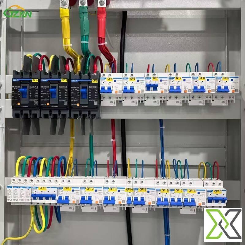 The unit incorporates circuit breakers and protection devices designed to support circuit switching and protection against overload and short-circuit conditions. The internal configuration includes organized busbar arrangements and modular installation to facilitate circuit management and maintenance.