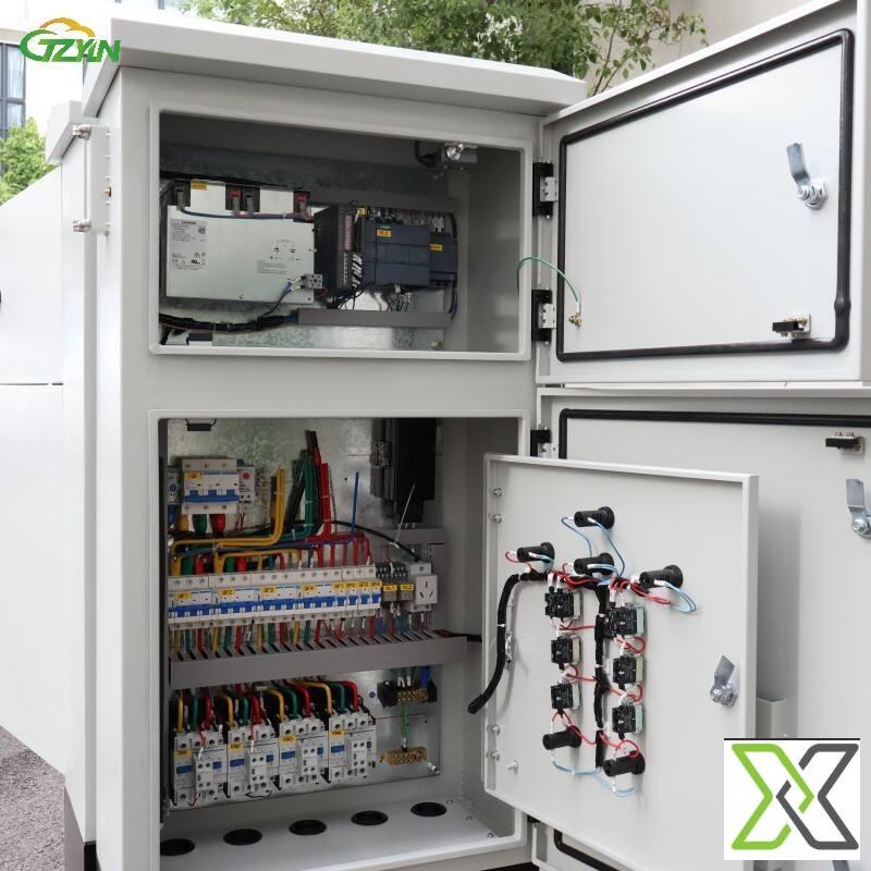This outdoor PLC control panel integrates electrical distribution and industrial control. It features robust construction, suitable for harsh outdoor environments, enabling efficient power distribution and equipment control with advanced PLC technology.