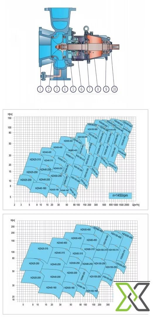 • HZX-800 HZX(FJX): Series code 800: Nominal diameter of the impeller: For new energy, MVR device, ammonium phosphate, phosphoric acid, vacuum salt,